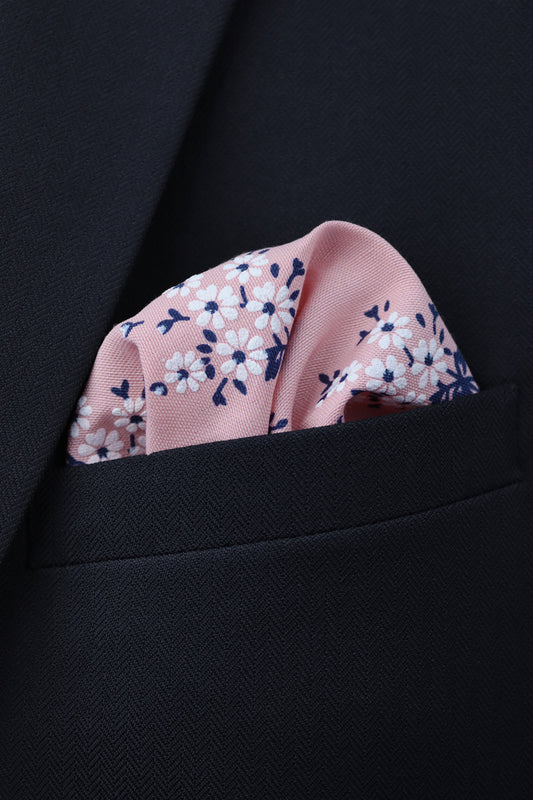 Floral Print Pocket Square - Pink & White