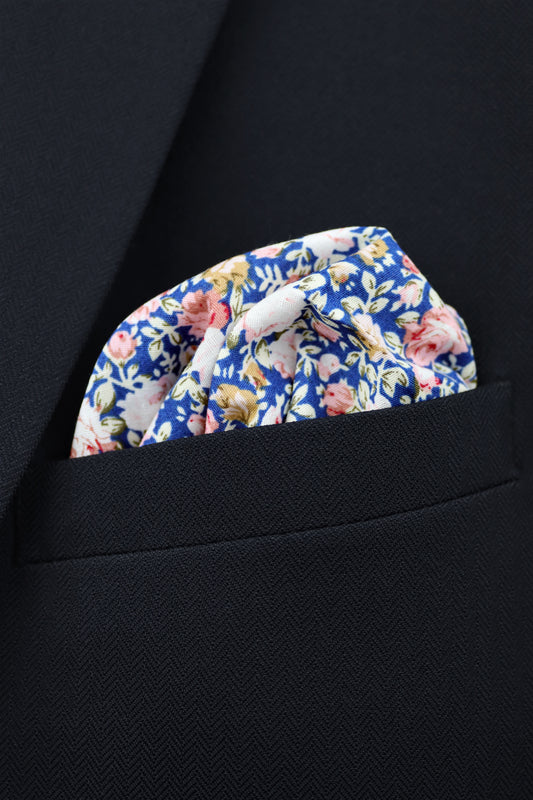 100% Cotton Floral Print Pocket Square - Blue & Pink