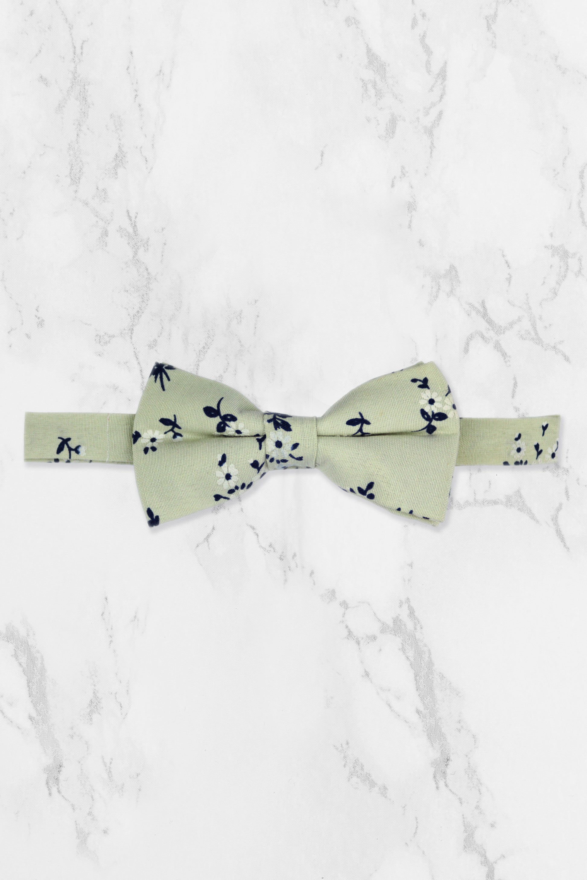 100% Cotton Floral Print Bow Tie - Green & Navy
