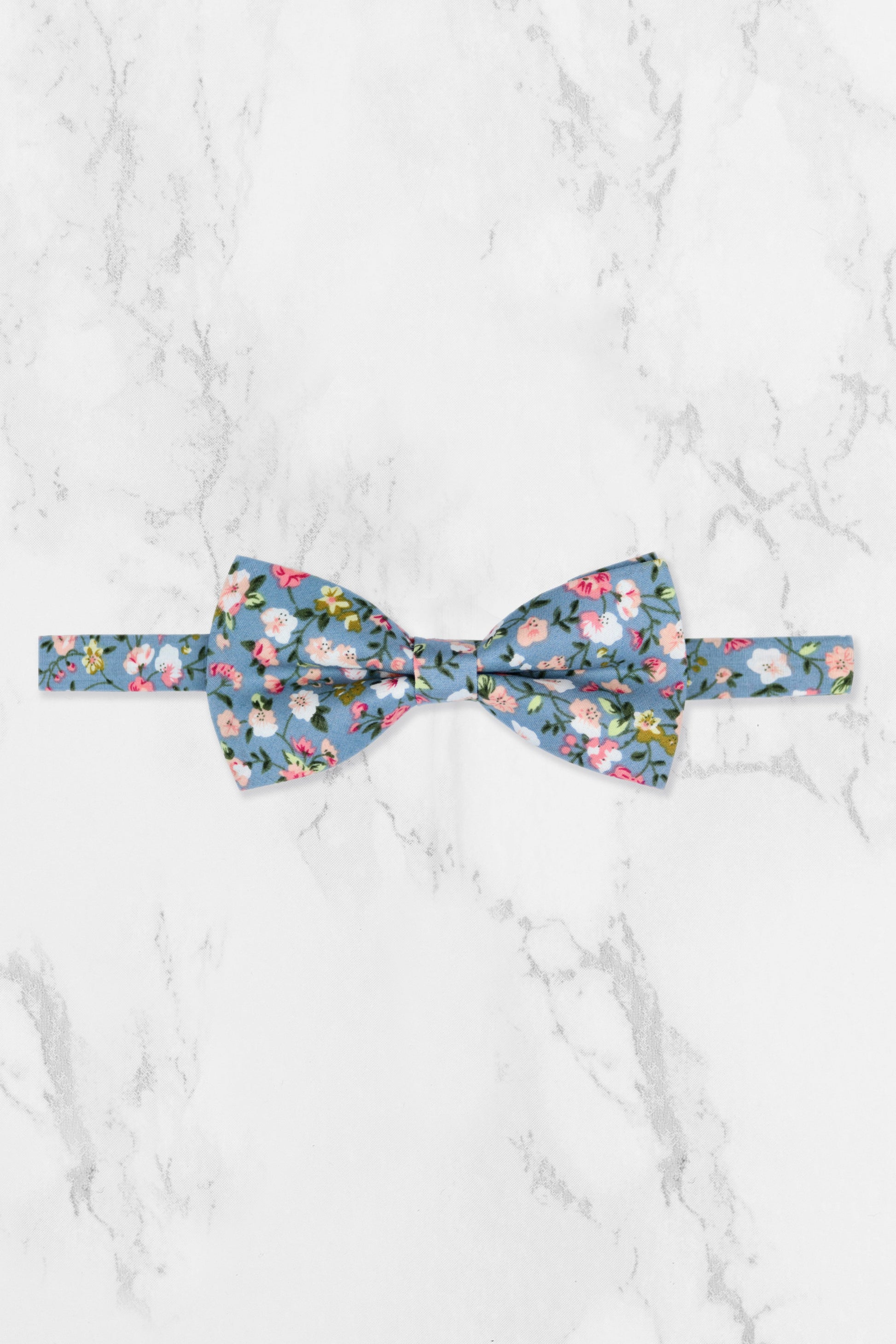 100% Cotton Floral Print Bow Tie - Blue & Pink