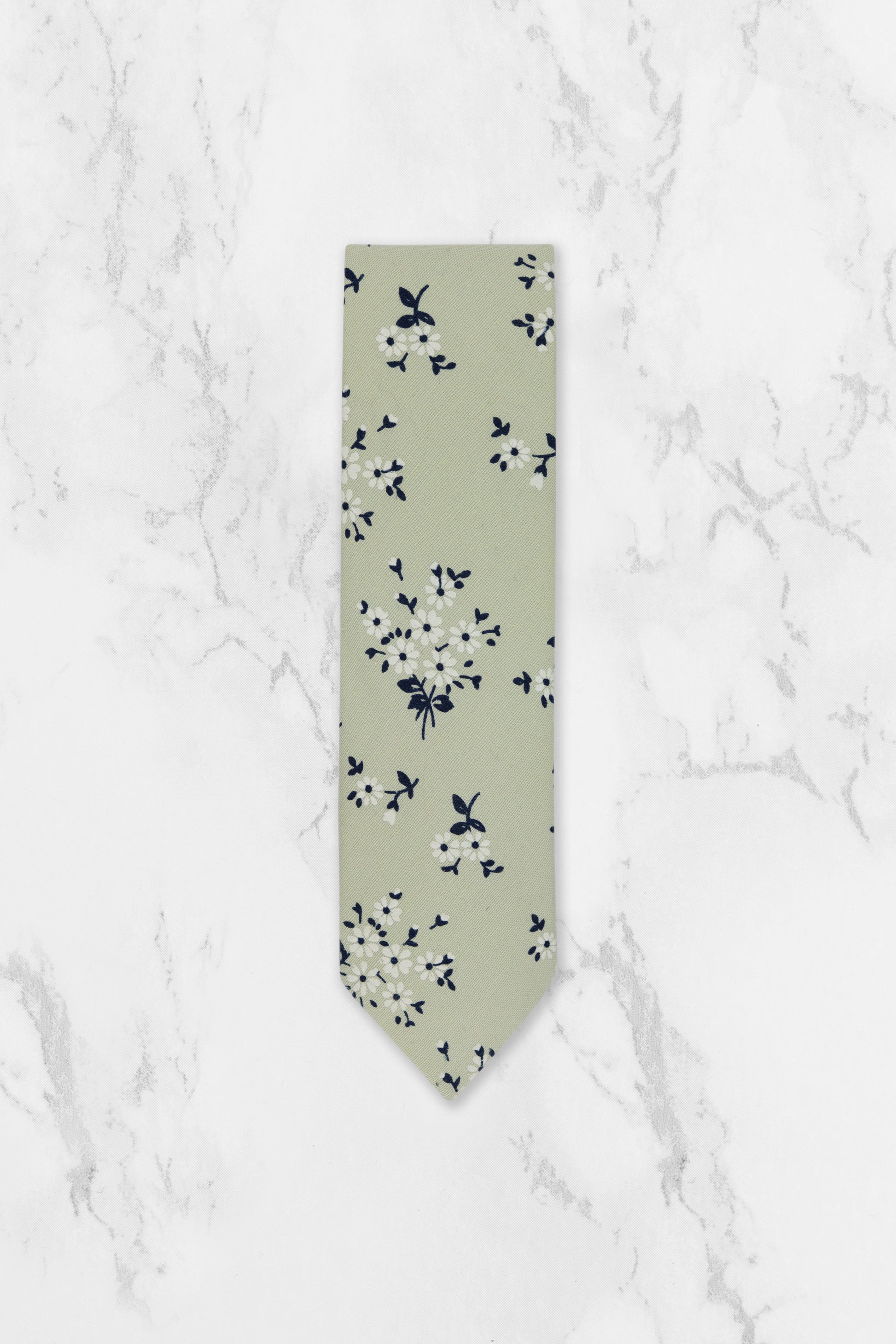 100% Cotton Floral Print Tie - Green & Navy