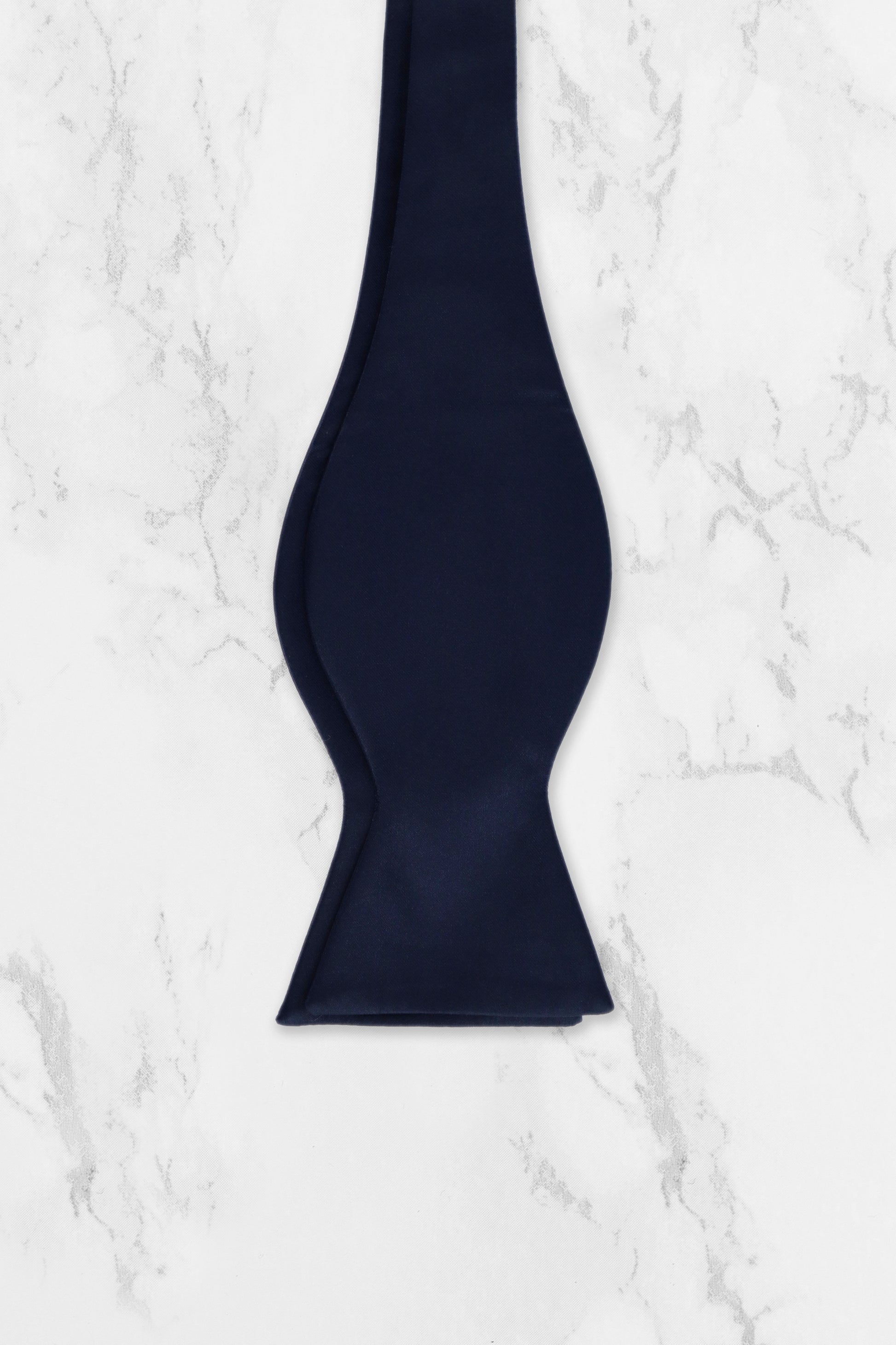 A plain navy blue self-tie bow tie with a beautiful satin finish. It has a luxurious sheen to the fabric and is designed with an adjustable ladder band to fit necks approximately 14" - 20". We pride ourselves on offering luxury ties made from the finest quality fabric. This is an effortless item for a stylish look.