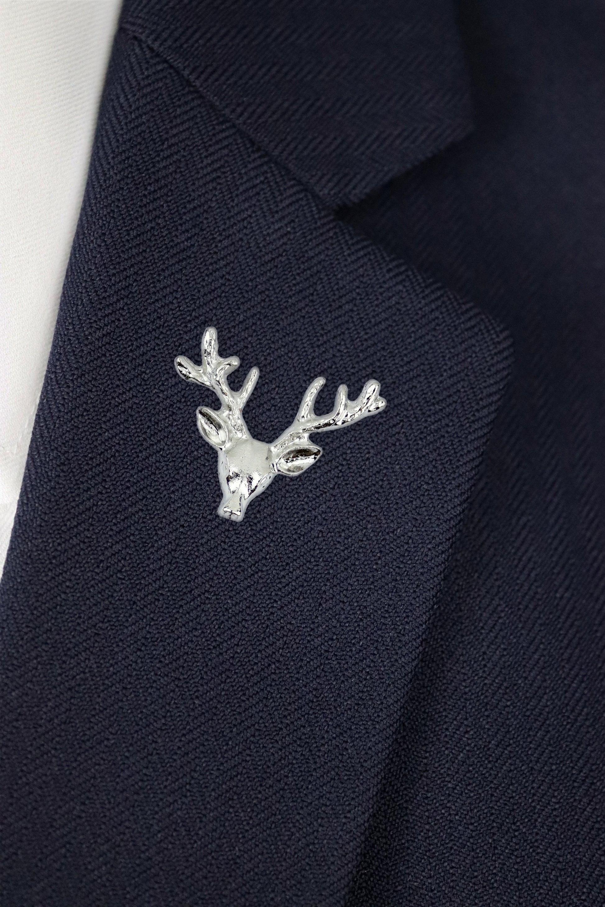 Nothing says "hunter-gatherer" quite like this silver stag head lapel pin which will finish off any formal or casual look.